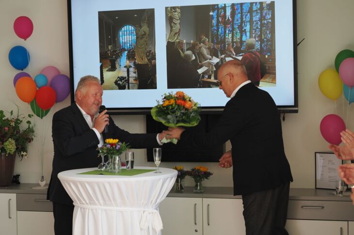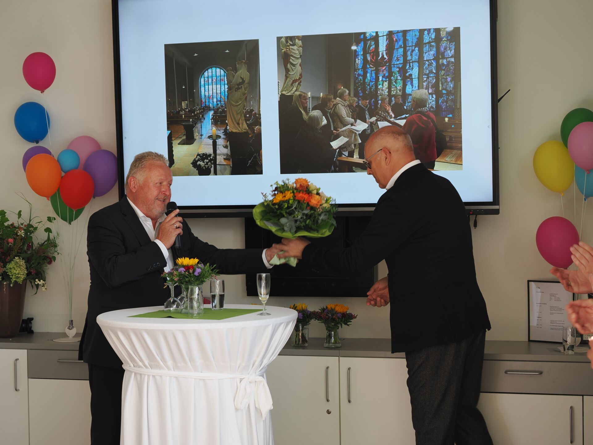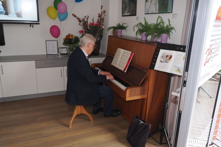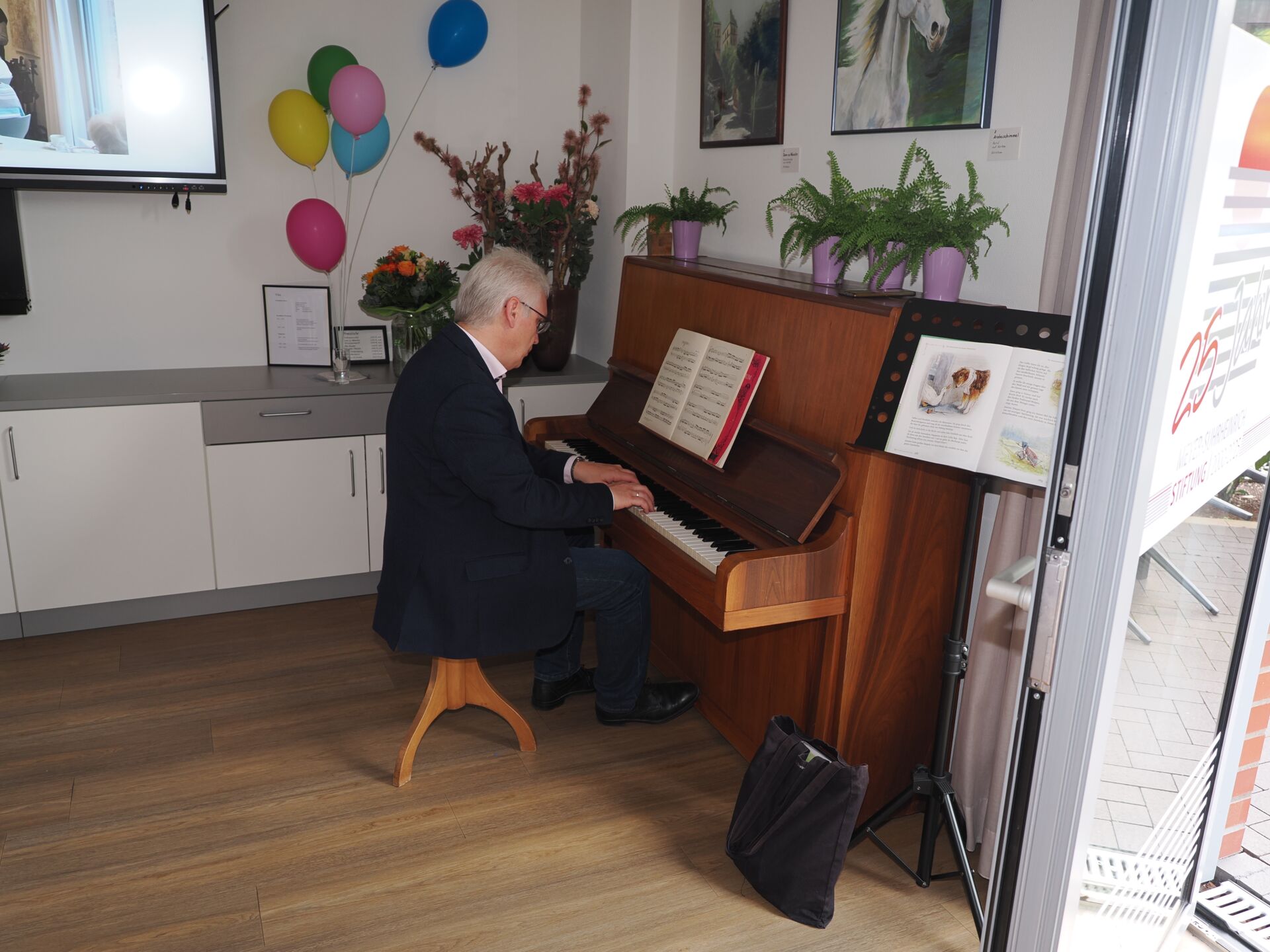 Im Anschluss an den Gottesdienst fanden sich die geladenen Gäste zu einer Feierstunde im Meyer-Suhrheinrich-Treff ein. Hier sorgte Henk Plas mit seiner Musik für eine stimmungsvolle Begleitung. Ein besonderer Höhepunkt des Nachmittags war die Würdigung von Benedikt Geise, der seit der Gründung vor 25 Jahren dem Kuratorium der Stiftung angehört und für sein langjähriges, engagiertes Wirken geehrt wurde. Ebenso wurde in Dankbarkeit des verstorbenen Reinhard Mangels gedacht, der ebenfalls seit der Gründung 25 Jahre lang im Kuratorium tätig war und die Arbeit der Stiftung wesentlich mitgeprägt hat.